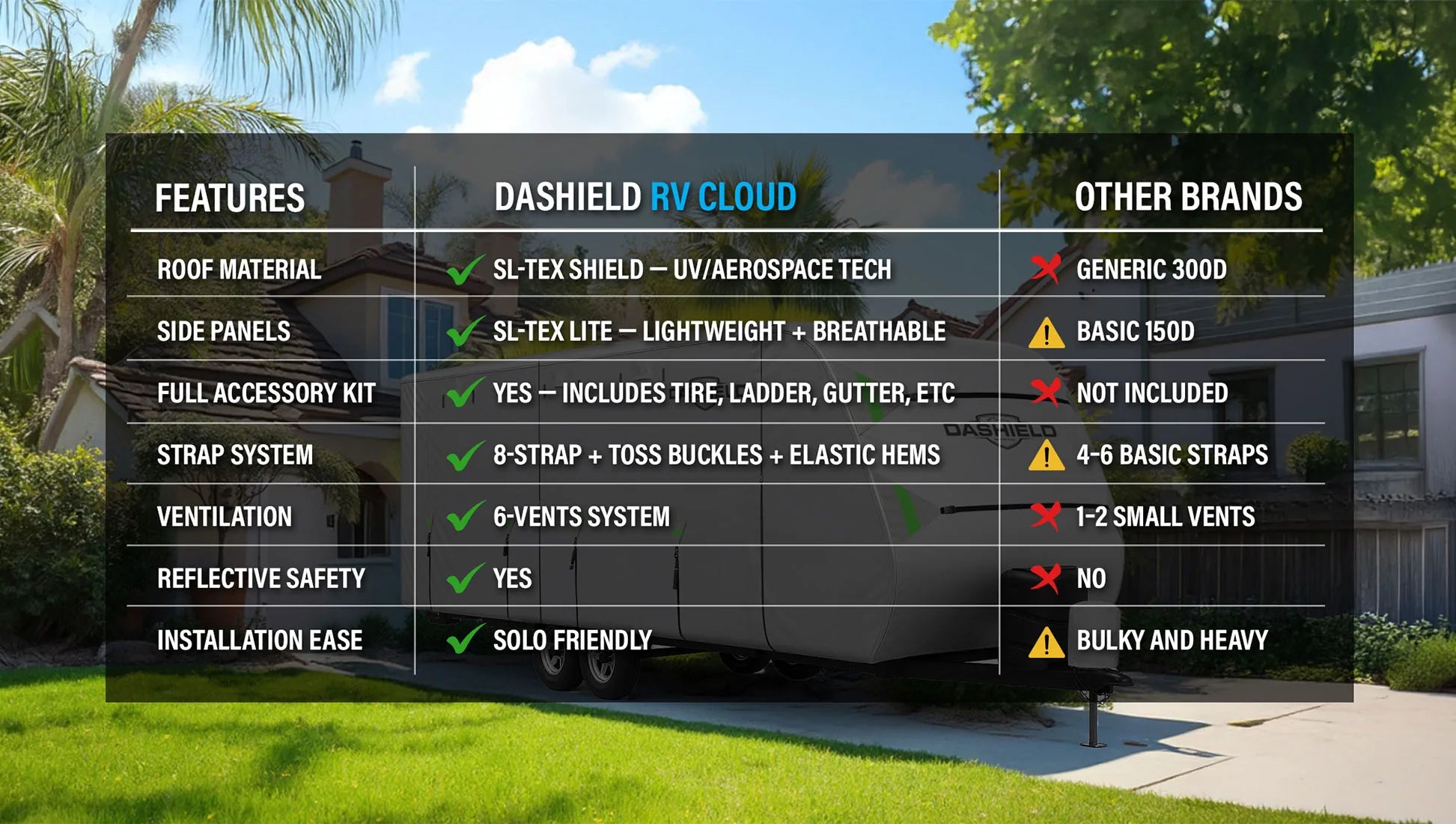 The only RV cover that breathes, repels, and stays under 15 lbs.