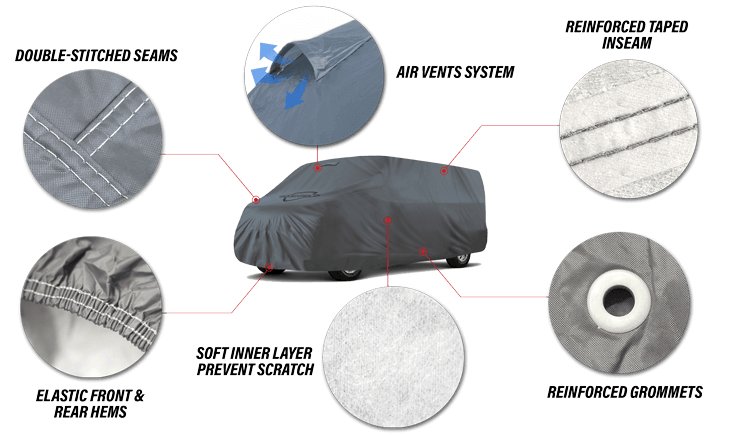 Meet the Dashield™ Ultimum Series VAN Cover – our top-rated, best-selling outdoor cover designed to provide ultimate protection for your vehicle. Engineered for all-weather durability, this premium cover shields your car from harsh UV rays, heavy rain , snow, wind, dust, and debris, ensuring 24/7 peace of mind.