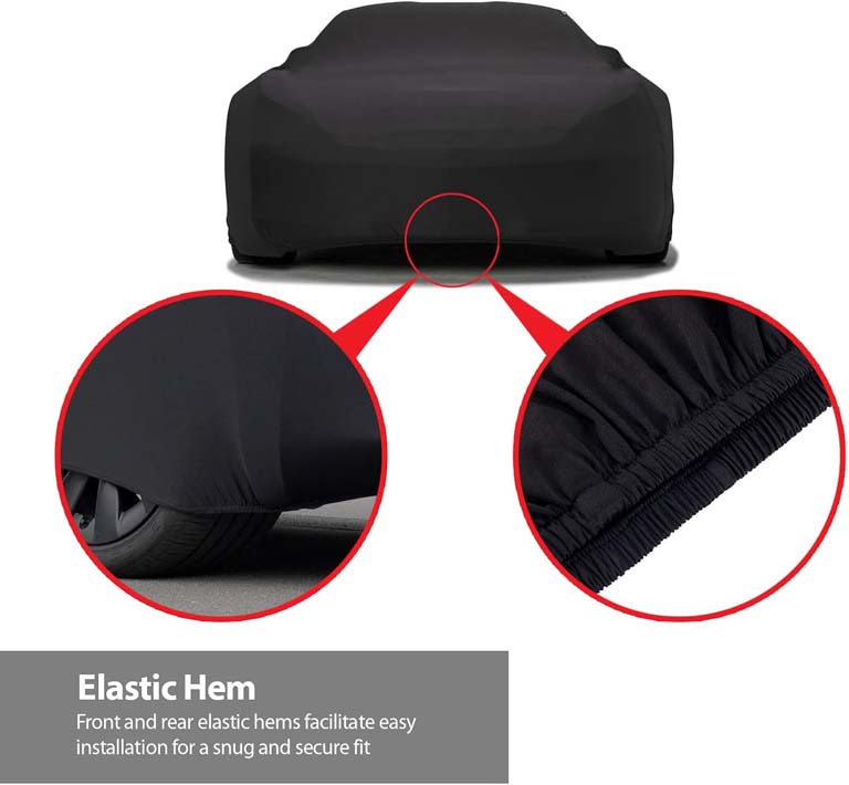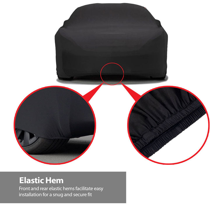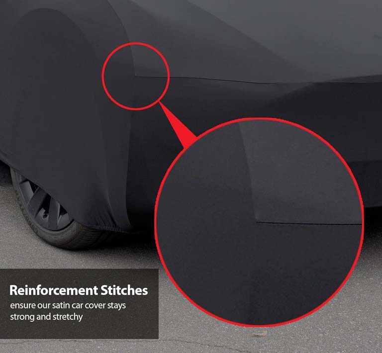 - High-Quality Soft Satin Material – Crafted from premium satin, this cover offers a soft, scratch-resistant surface that’s gentle on your car’s paint, providing an ideal layer of protection for indoor storage. The dense, luxurious satin fabric keeps dust and small particles from settling on the vehicle, preserving its polished appearance.